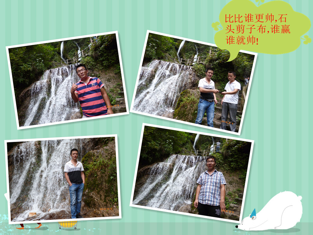 今年的旅游活動安排在收獲的金秋九月進行。目的地是美麗的北國江南重渡溝。9月6日早上乘車赴欒川,中午順利到達重渡溝風景區,游覽了西溝滴翠河景區,觀悅竹林長廊,水簾仙宮主瀑布,賞鐘乳奇觀水簾洞,看五彩蓮池、玉如意瀑布,嘆震天雷瀑布等奇觀美景。到返樸百年的農耕村打九龍震天炮,觀珍禽異獸園、迷宮探險,看老酒館、狼戴帽飯莊,賞陶器作坊、釀酒、磨豆腐,紡織院、鐵匠鋪等,臨摹制勝技術,體驗古代生活。9月7日游覽了南溝金雞河景區,觀千年菩提樹、飛虹瀑布、生態娛樂園、泄憤崖瀑布、雙疊瀑布、玉女出浴、天井泉、劍插泉,登好漢坡、英雄嶺、依劍峰等。